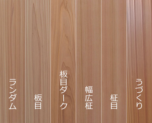 板目、柾目、ランダムなどの貼り方、塗装による着色、